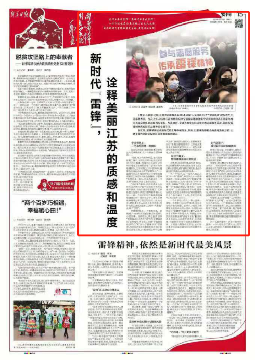 放眼江蘇大地,對標雷鋒、遍地開(kāi)花的志愿服務(wù)已成為社會(huì )文明進(jìn)步的重要標志,“為人民服務(wù)”的雷鋒精神永恒,人們對“學(xué)雷鋒”的內涵意義也有了越來(lái)越深的理解。